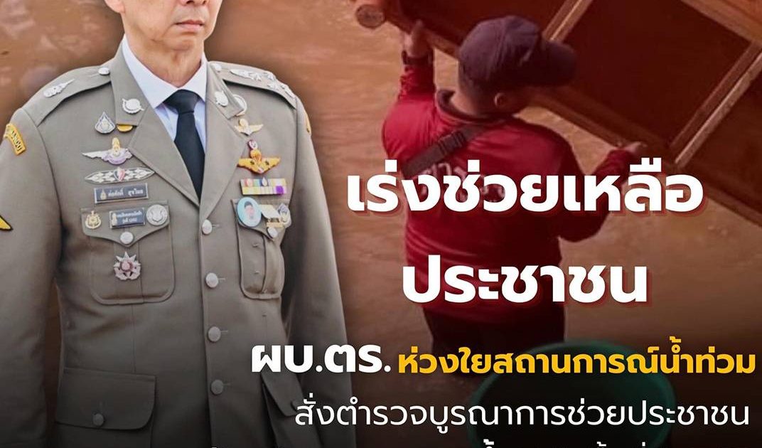 ผบ.ตร.สนองนโยบายนายกรัฐมนตรี ห่วงใยสถานการณ์น้ำท่วม สั่งตำรวจทุกหน่วยเร่งบูรณาการให้ความช่วยเหลือประชาชน คุมเข้ม ตรวจตรา ป้องกันอาชญากรรมซ้ำเติมประชาชนในพื้นที่ภัยพิบัติ เน้นย้ำผู้บังคับบัญชาดูแลครอบครัวตำรวจที่ได้รับผลกระทบด้วย