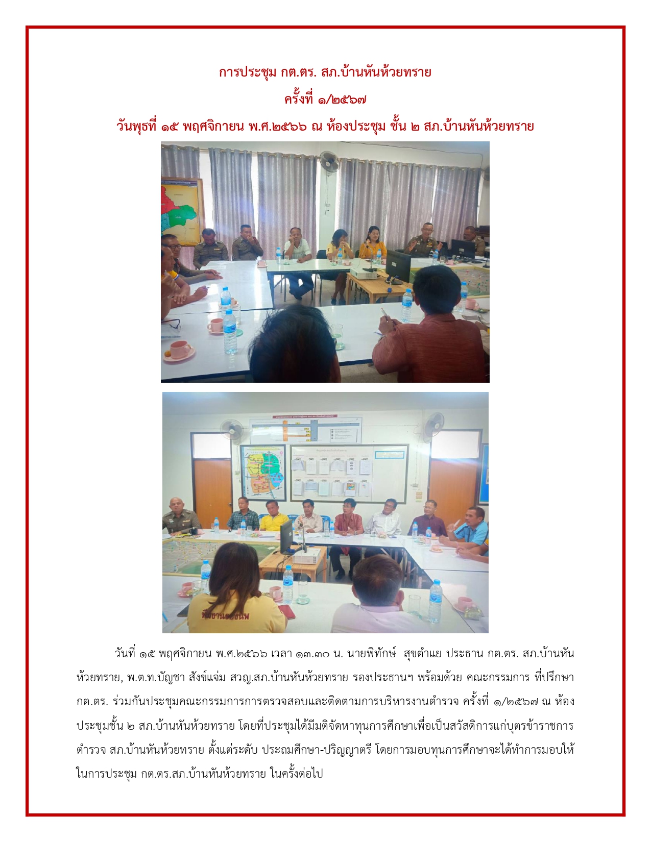 ***การประชุม กต.ตร.สภ.บ้านหันห้วยทราย มีการประชุม 1 ครั้ง ต่อ 2 เดือน***