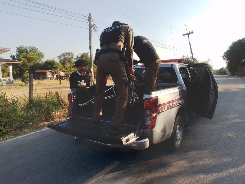 เจ้าหน้าที่ตำรวจ สภ.บ้านหันห้วยทราย ช่วยเหลือนักเรียนรถจักรยานยนต์ยางรั่ว ให้ถึงบ้านโดยสวัสดิภาพ