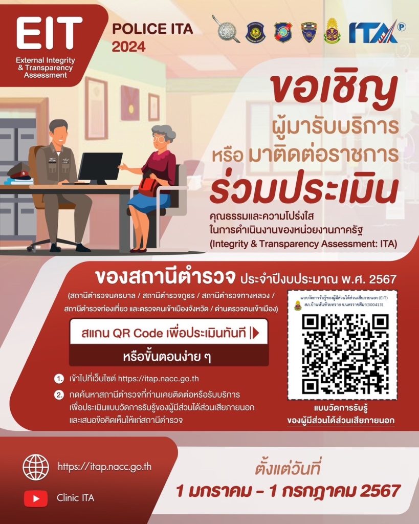 ขอเชิญชวน ผู้มารับบริการ / มาติดต่อ สถานีตำรวจ ร่วมประเมิน