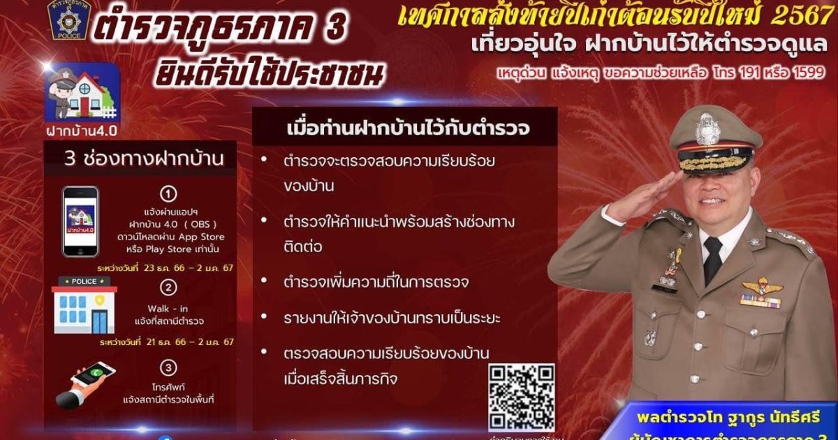 เทศกาลปีใหม่ 2567 หยุดยาว เดินทางไกลฝากบ้านไว้ให้ตำรวจดูแล