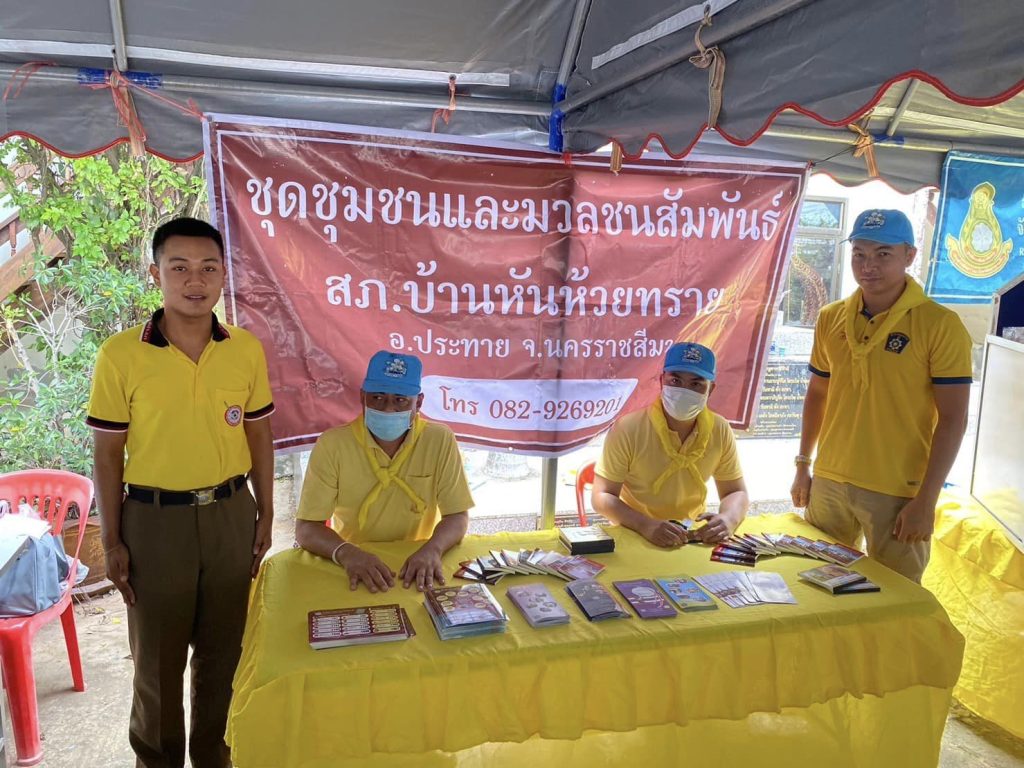 โครงการ”อำเภอยิ้ม…เคลื่อนที่” 29 กันยายน 2566 โดย admin / ข่าวกิจกรรม วันที่ 21 ก.ย.66 เวลา 09.00 น.พ.ต.ท.บัญชา สังข์แจ่ม สวญ.สภ.บ้านหันห้วยทราย มอบหมายให้ พ.ต.ต.วิเชียร พันสาง สวป.สภ.บ้านหันห้วยทราย พร้อมด้วยตำรวจชุมชนมวลชนสัมพันธ์และเจ้าหน้าที่ชุดจิตอาสา ร้อยเวร ๒๐ และจราจร สภ.บ้านหันห้วยทราย ร่วมกับหัวหน้าส่วนราชการ ฝ่ายปกครอง สาธารณสุข ผู้นำชุมชน และประชาชนจิตอาสา เข้าร่วมโครงการ”อำเภอยิ้ม…เคลื่อนที่” ได้ประชาสัมพันธ์สื่อไซเบอร์วัคซีน แจกจ่ายแผ่นพับ , คู่มือประชาชน และให้บริการตัดผมฟรี โดยมีนายสรวิศ เหล่านิล นายอำเภอประทาย เป็นประธานในพิธีณ วัดเมืองโดน ต.เมืองโดน อ.ประทาย จ.นครราชสีมา FacebookFacebookXXLINELine