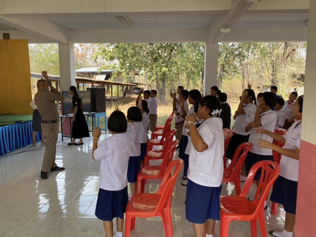 ให้ความรู้เกี่ยวกับโทษของยาเสพติด ในกิจกรรมสร้างสรรค์ป้องกันและแก้ไขปัญหายาเสพติด ณ รร.สี่แยกอรัญวิทยา